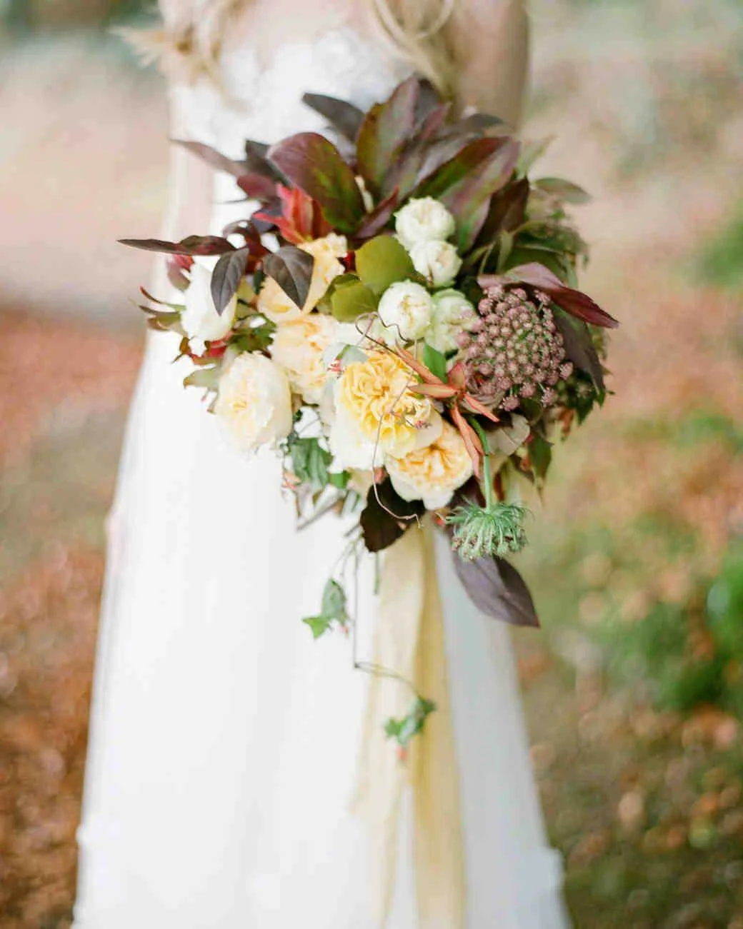 Current palette trends are among some of my favorite color combinations. Moody flower hues such as dusty rose, latte, apricot, champagne, buttercream and milky moonstone can help create a subdued romantic vibe. Remember to take into consideration the month of your event to get the most beautiful blooms of the season. Flowers can also be accented with ribbons and other unique accesories.